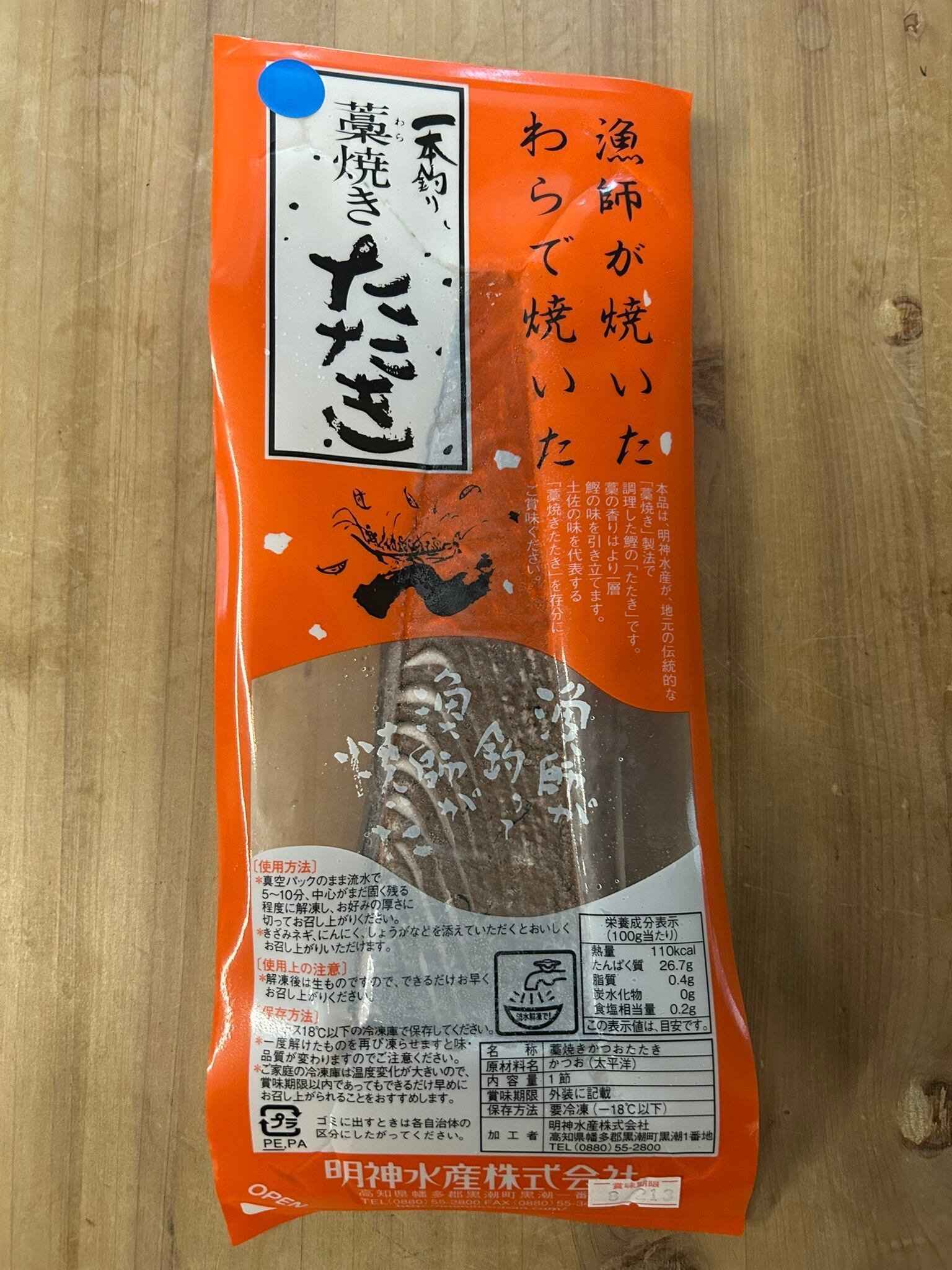 高知の人気店「明神水産」から。新鮮な鰹を使用した「藁焼き鰹たたき」。食べる直前に流水解凍してカットすることで、極上の味わいをそのままお楽しみいただけます。藁で焼き上げることで、独特の香ばしさと深い旨味が引き出され、鰹の新鮮さと絶妙に調和します。自宅で簡単に本格的な味わいを堪能できる逸品です。ポン酢が一般的ですが、塩タタキもおすすめ。