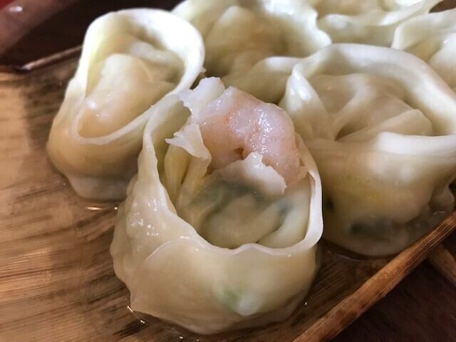 6個の海老餃子が竹皮に包まれていて、包みを開けた瞬間にいい香りが広がります。