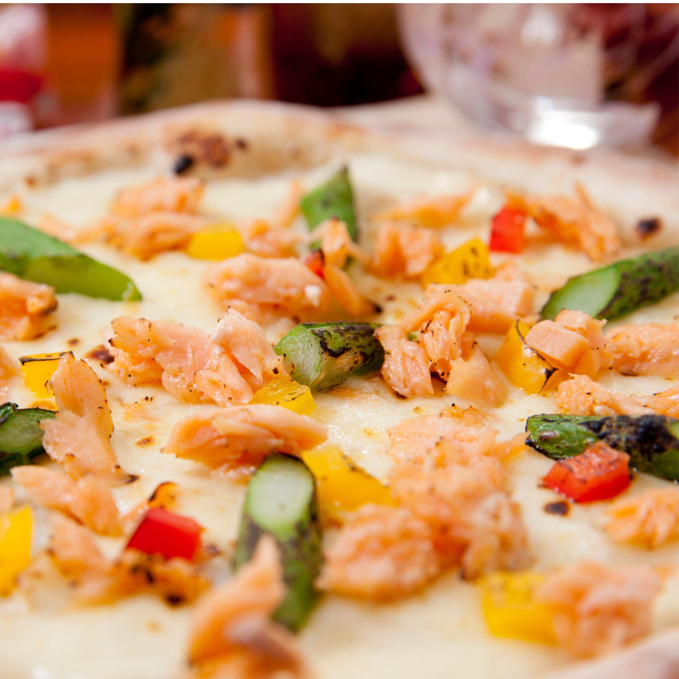 境港のブランドサーモンを使ったクリームピザ。クリーム好きにおすすめの1枚です。